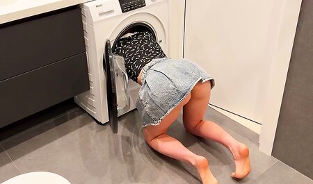 Stiefmutter blieb in der Waschmaschine stecken und Stiefsohn fickte sie auf die bestmögliche Art und Weise