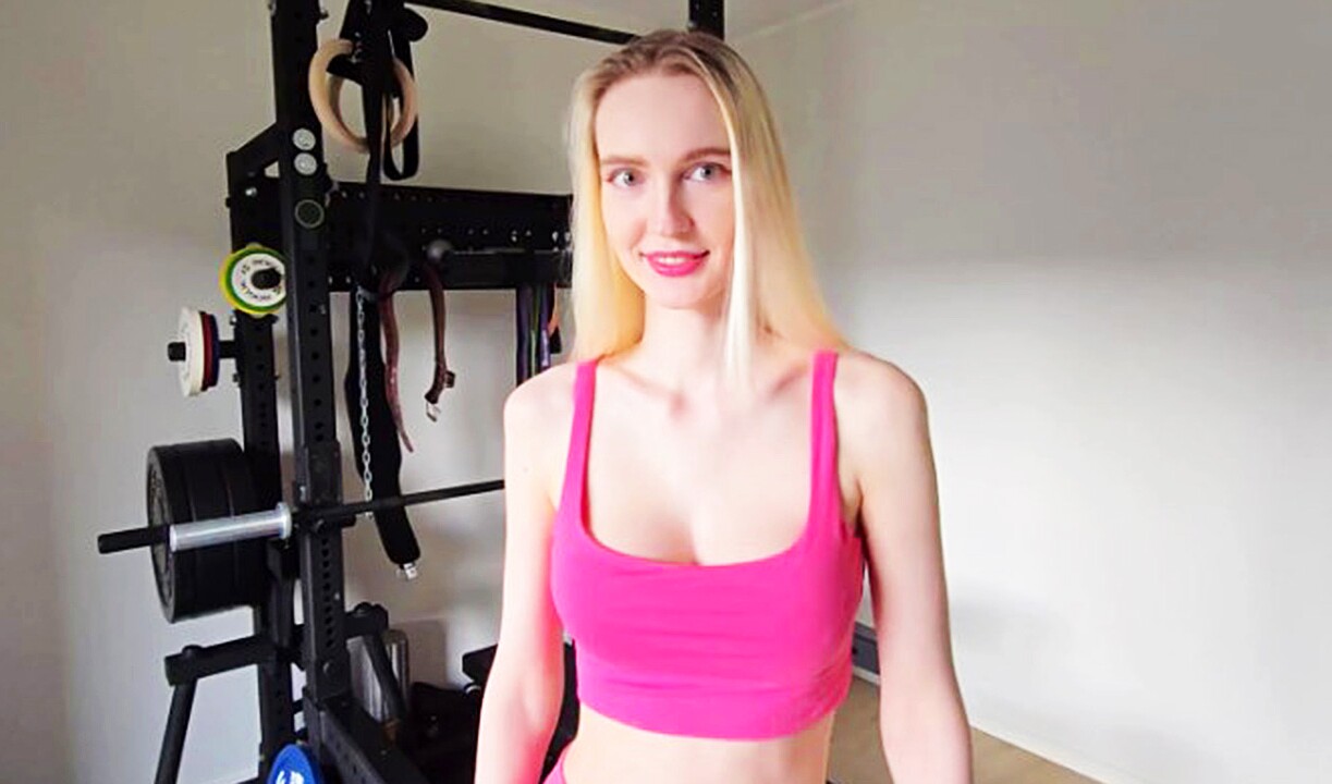 Ein bezauberndes, fittes Mädchen hat im Fitnessstudio Sex mit einem zufälligen Typen