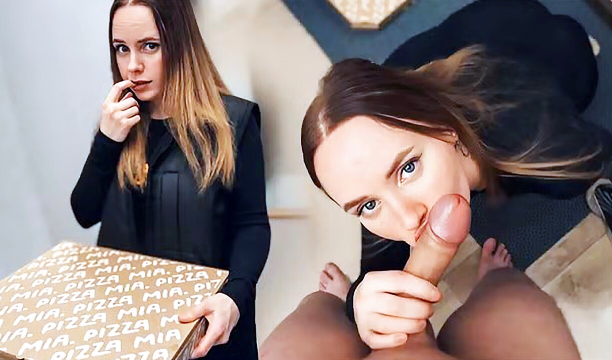 Der Pizzabote bringt Freude auch durch seinen Arsch